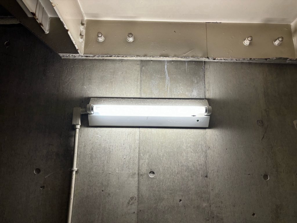 LED非常灯の設置完了。明るさがしっかり確保され、省エネ性能も向上しました。